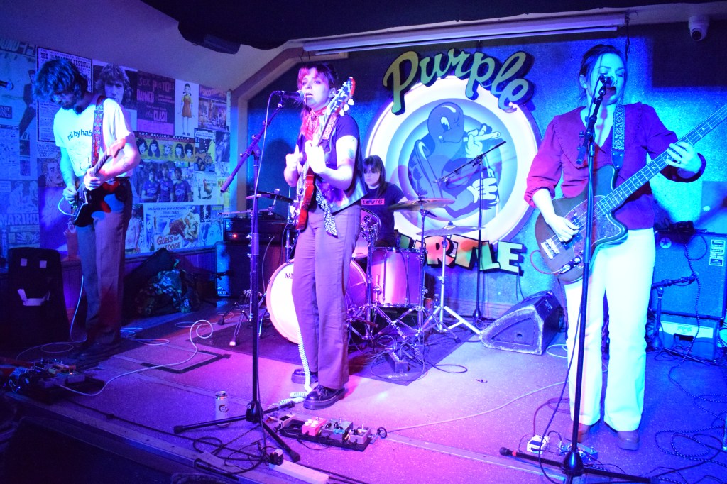 There is only one track on release so far, the very catchy ‘Oh Boy’, but there is plenty more where that came from on the basis of this gig. Catch them at Reading’s very own ‘Are You Listening?’ Festival where they have just been announced as part of the line-up. They themselves suggest garage rock and indie-sleaze are their key references and drummer Hannah Bowles certainly gives off strong Meg White vibes with some quality drumming. One track mid-set slows things down considerably and suggests they have more strings to their bow. Their set is linked below on Purple Turtle TV.