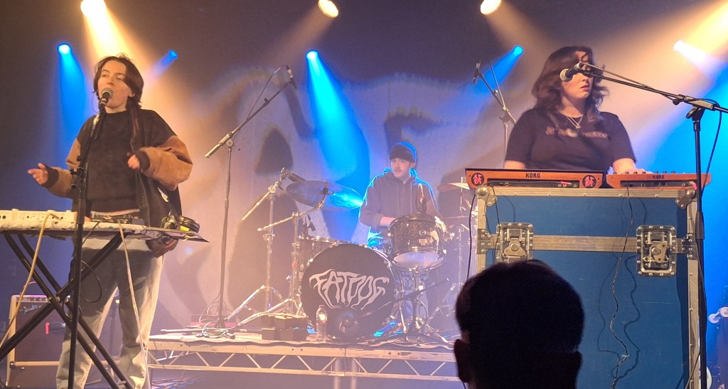 Fat Dog’s saxophonist Morgan Wheeler and bassist Jacqui Wheeler indeed front this electronica side-project with keyboards and various boxes for earnest knob-twiddling. One track in the middle was particularly catchy and got people moving along, tapping fingers and nodding heads. Whilst this won’t be threatening to eclipse the day job anytime soon, they might well emerge with a decent album at some point.
