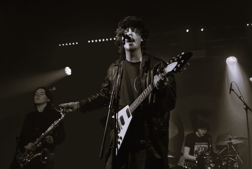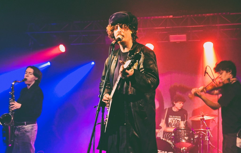 I am wandering around outside the 02 considering if I want something to eat and almost turn straight into Joe Love, Fat Dog’s lead singer, composer and sometimes guitar player. It is not the first time I have nearly bumped into someone I am off to see on the Cowley Road. It takes a moment after he has passed for me to process the moustache, leather jacket and trapper hat that means it could not have been anybody else. Bizarrely, it ends up not being the closest I get to him on this crazy evening.