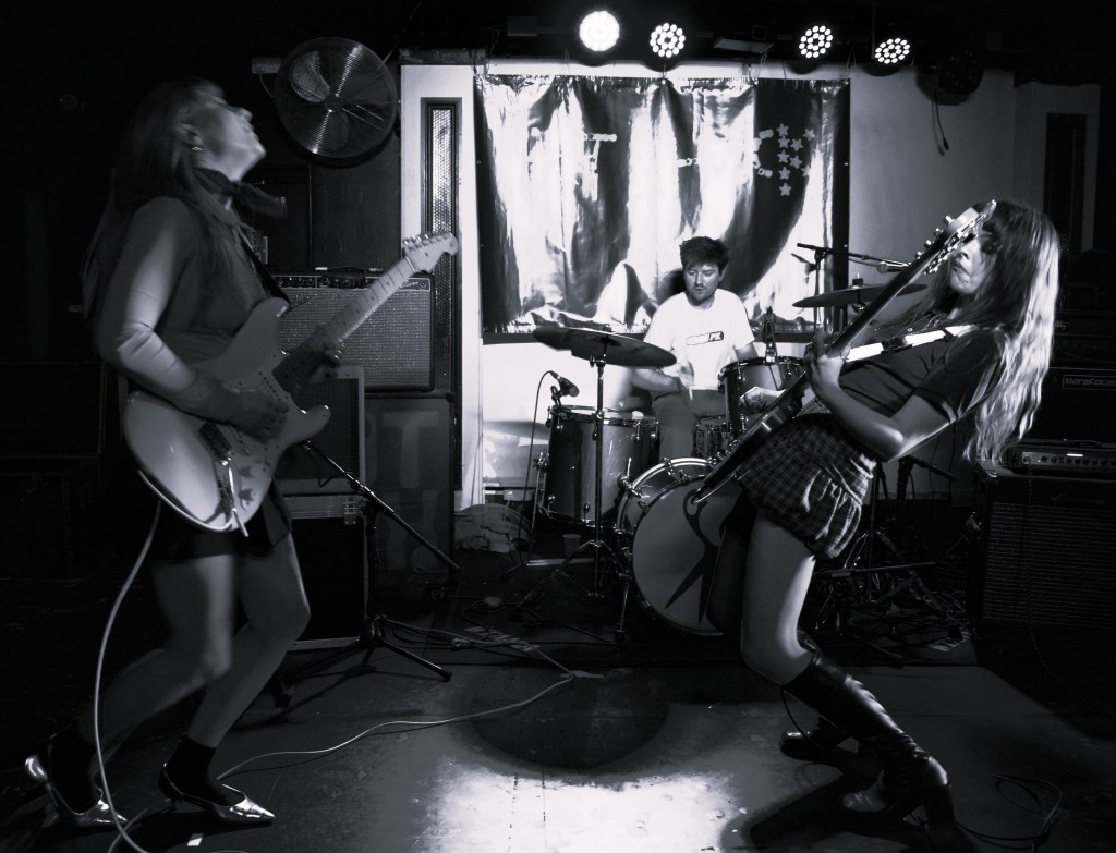 They blast off with the first four tracks of debut album Hot Shock in order. Singles ‘She’s Got A Problem’ and ‘Wanna Be A Doll’ appearing here along with the grungier ‘Strange To Be Here’ and ‘Dress Our Love.’ We then jump back in time for the heavier riffing of ‘Treasure.’