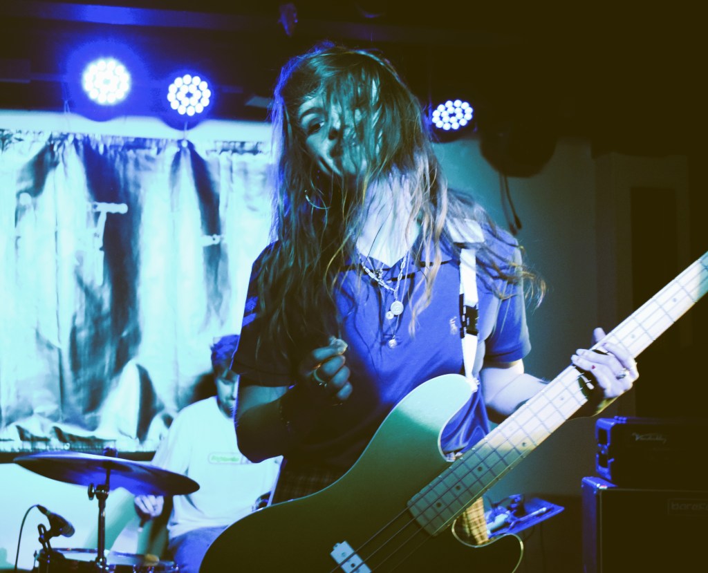 So fresh a band I can only find their Instagram and one poor quality video on YouTube, not a sausage on any streaming platforms. Despite the lack of information they are a really lively four-piece band and contribute to tonight’s girl power vibes with three of the four members being female. They mix high quality material of their own with fun covers of ‘Heard it Through The Grapevine’ and ‘Loveshack’. The lead singer is confident and a presence on stage. There is a mix of writhing around, energetic leaping and decent crowd connection.