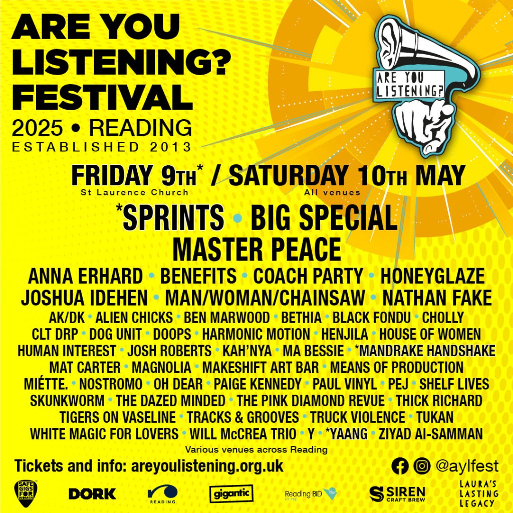 Tickets are still available from: https://areyoulistening.gigantic.com/are-you-listening-festival-tickets