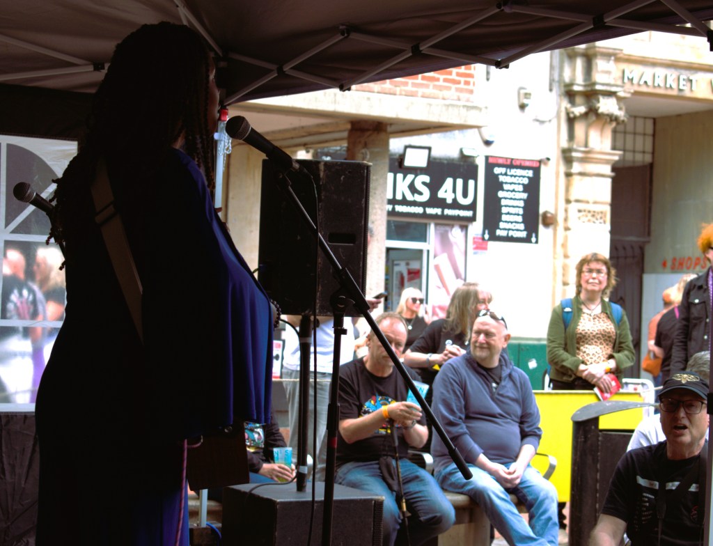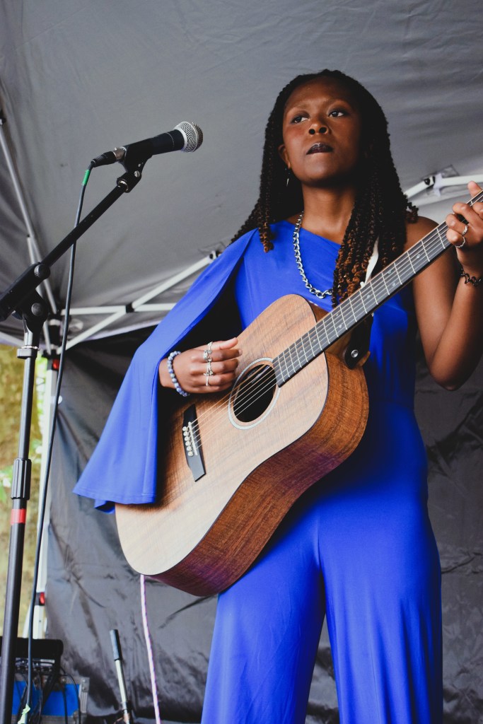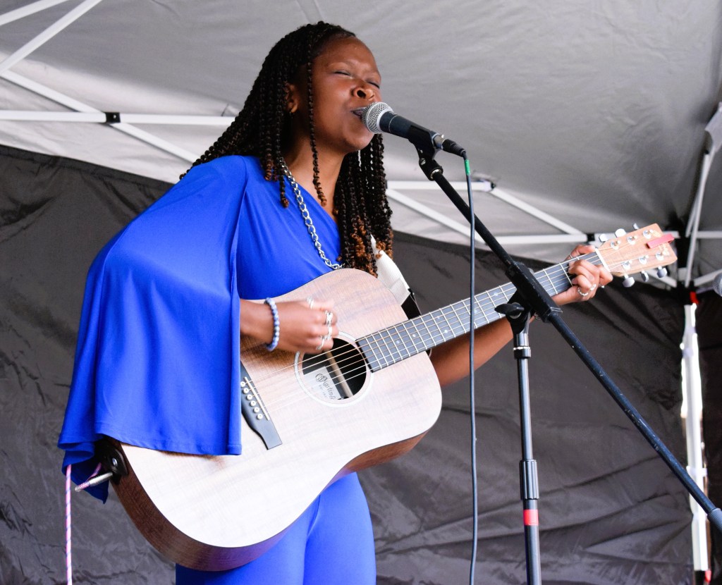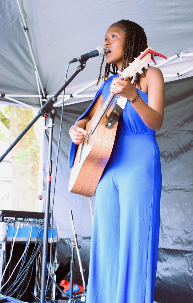 Listening to Kah’Nya recorded there are a range of influences and instruments at play. Here today on the outdoor stage of the AYL? Hub, on a beautifully sunny day, she is boldly up there on her own with an acoustic guitar. It shows the extent of her talents as she easily carries every track with strong playing and the stripped back versions allow her voice and the gorgeous melodies to shine.
