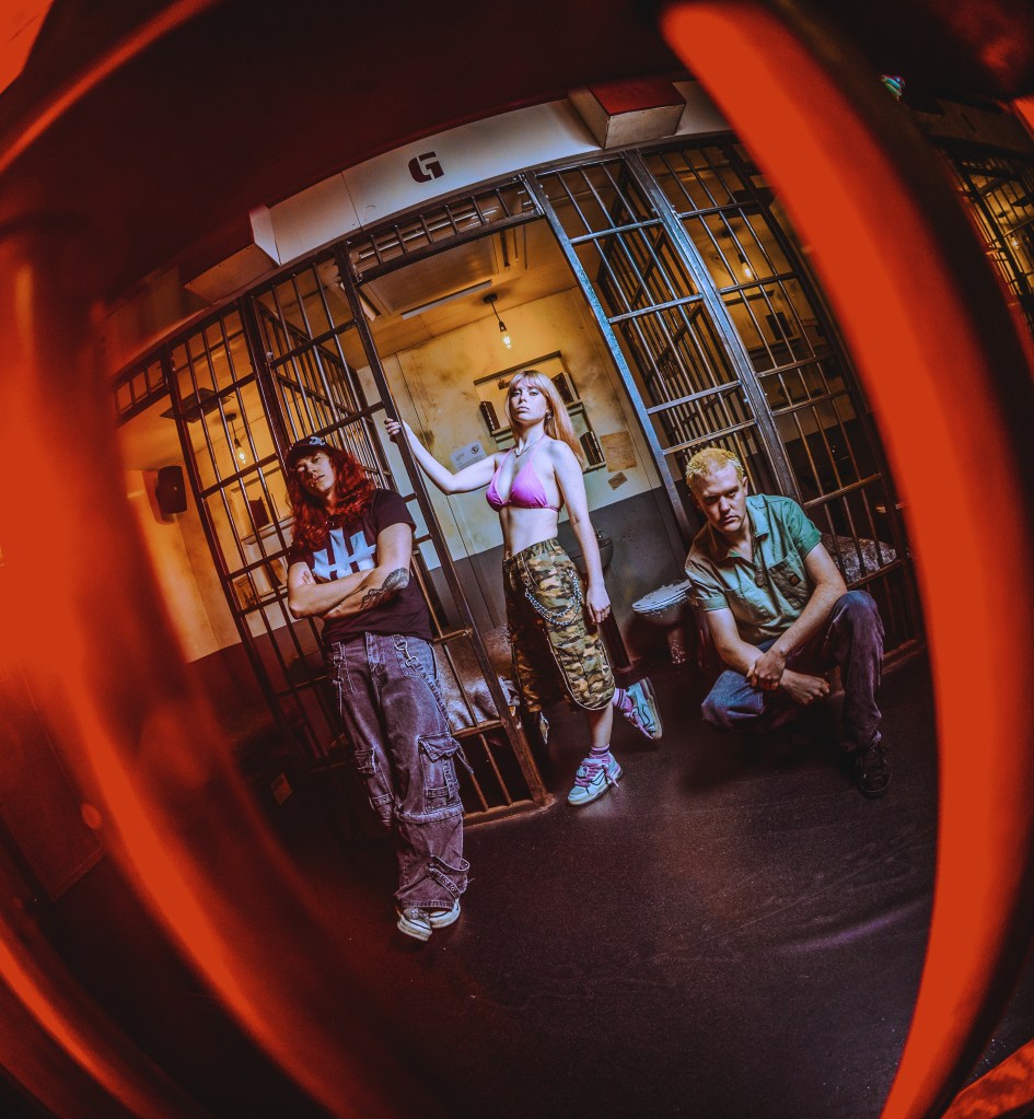We have already mentioned some, but each member of our band brings a different set of influences. Our tastes overlap a lot, but it was Eva (vocalist and guitarist) who introduced Jude (vocalist, bassist, producer) and Milo (drummer) to the brattier side of things such as Britney Spears and Charli XCX, while also being a huge nu-metal and alt-metal fan herself with bands like System of a Down and Limp Bizkit. Milo, like Eva, is big on nu-metal such as Korn and Slipknot but also loves alt rock and alt punk with bands like Drug Church and The Prodigy. Jude leans heavily into modern metal due to his passion for music production, he also leans into genres like metalgaze, and thall (Thall is a subgenre of progressive metal often described as an extreme and more experimental version of djent). Bands like Bring Me The Horizon and Loathe play a huge role in his inspiration. All of these artists are loved by every member of the band, and they are great examples of the music that inspires us and feeds into the genre ‘Brat Metal’!