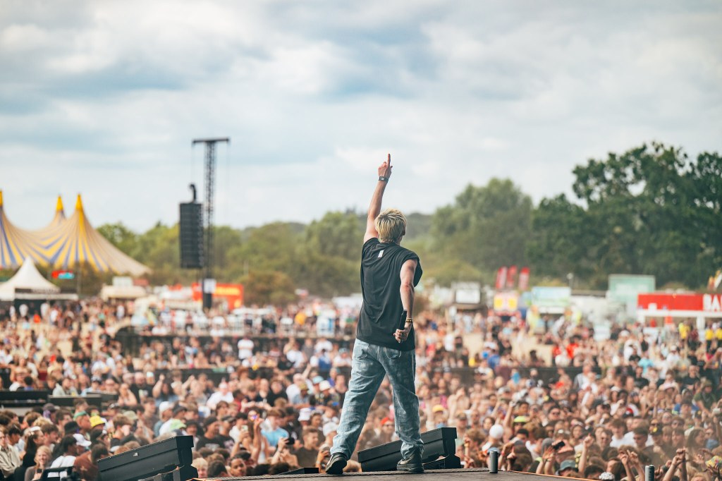 We haven’t witnessed this level of control freakery on the Festival Republic Stage since Sleep Token in 2023. Huge amounts of lighting and two massive stacks of Marshall Amps were wheeled in to form an immersive set for The Dare. Due to the complexities, the set started a good ten minutes or so late. It was worth the wait. Harrison Patrick Smith is an odd combination of music geek and cool kid but was by far the best thing we saw all day.